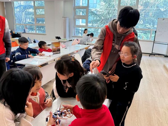近日,w66利来旗舰厅青衿志愿服务协会社会实践队前往青岛市崂山区东城国际社区开展“e心课堂”系列活动。实践队通过科学家精神宣讲、机器人体验和AI伴学体验,为社区青少年赋能。