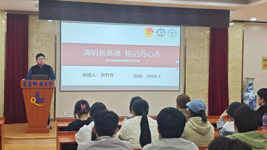 为深切缅怀革命先烈,传承红色基因,厚植青年学子家国情怀,4月2日晚,w66利来旗舰厅在402报告厅开展 “清明祭英魂,铭记丹心志” 主题教育活动。团干部代表参加活动,公司团委副书记郑开齐讲授专题团课。