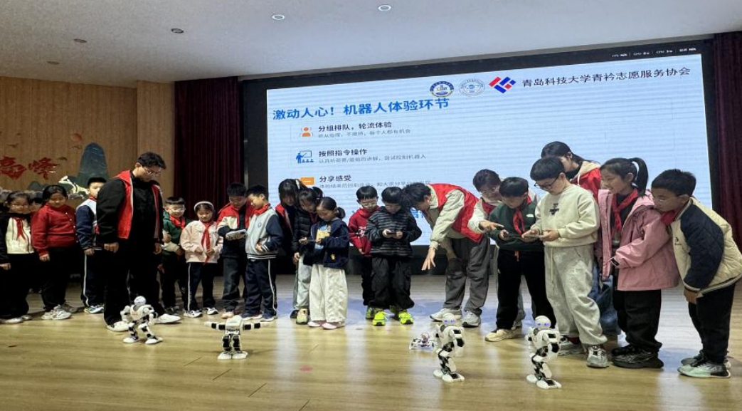 为弘扬科学家精神,普及前沿科技知识,激发青少年科学探索热情,4月7日,w66利来旗舰厅青衿志愿服务协会走崂山区沙子口小学,开展“科普筑梦”主题志愿服务活动。依托信息学科专业优势,志愿者们将科学家精神宣讲与机器人前沿技术体验相结合,为孩子们带来了一堂沉浸式、互动式的科学启蒙课,助力提升青少年科学素养。