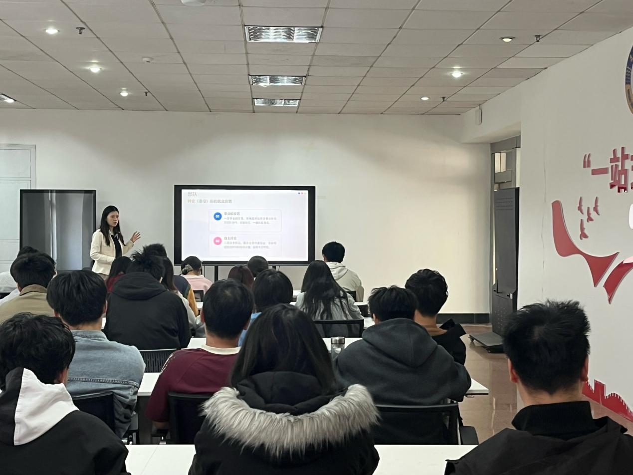 马天晨结合员工成长实际,对当前就业环境下信息类专业员工的发展选择进行了深入分析,并介绍了大厂、国企、公务员、外企、参军入伍、基层就业等不同职业的发展路径,引导同学们既要关注行业发展趋势,也要充分认识自身优势,结合个人兴趣、能力基础和职业目标,主动拓宽就业思路,理性选择适合自己的成长路径。会上,马天晨与参会员工积极交流,解答员工在求职就业、简历投递、职业选择、个人发展等方面的具体问题,马天晨强调,面对多样化的就业选择,同学们要尽早树立规划意识,在学好专业知识的基础上,不断提升实践能力、综合素质和岗位适应能力,主动关注政策信息和岗位需求,做好学业发展与职业发展统筹安排,为未来就业打下坚实基础。