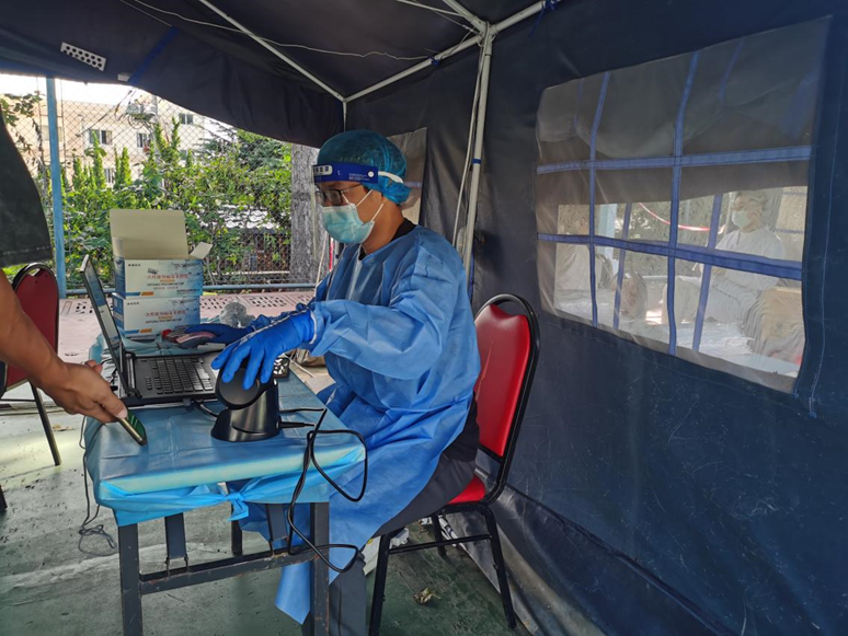 宫传政回答:“我是党员,这个时候我要冲在前列,看到师生核酸检测安全高效有序进行,几个小时的付出,再累也值了!”