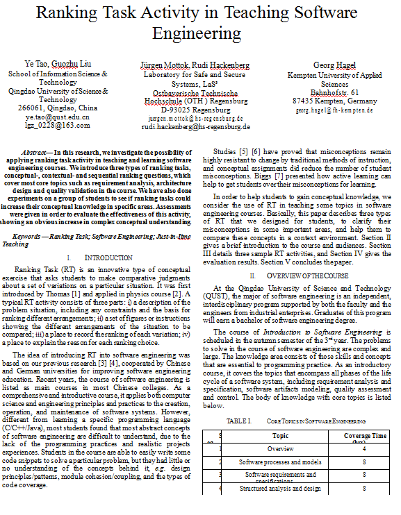24、教研论文--Ranking Task Activity in Teaching Software Engineering