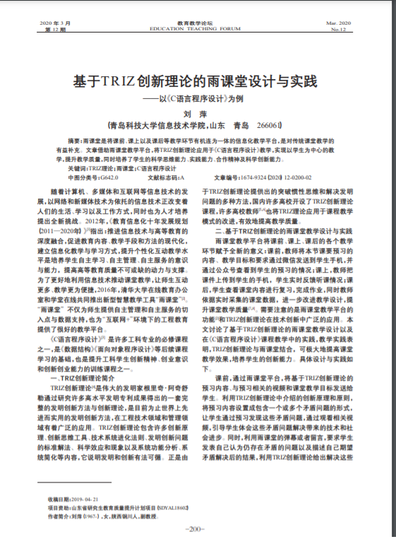 30、教研论文--基于TRIZ创新理论的雨课堂设计与实践——以《C语言程序设计》为例