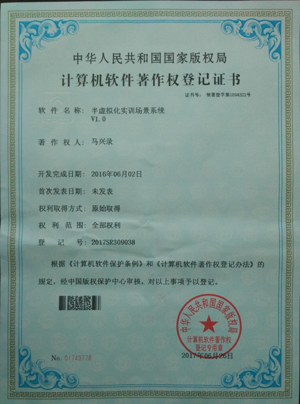 7、软件著作权--半虚拟化实训场景系统v1.0