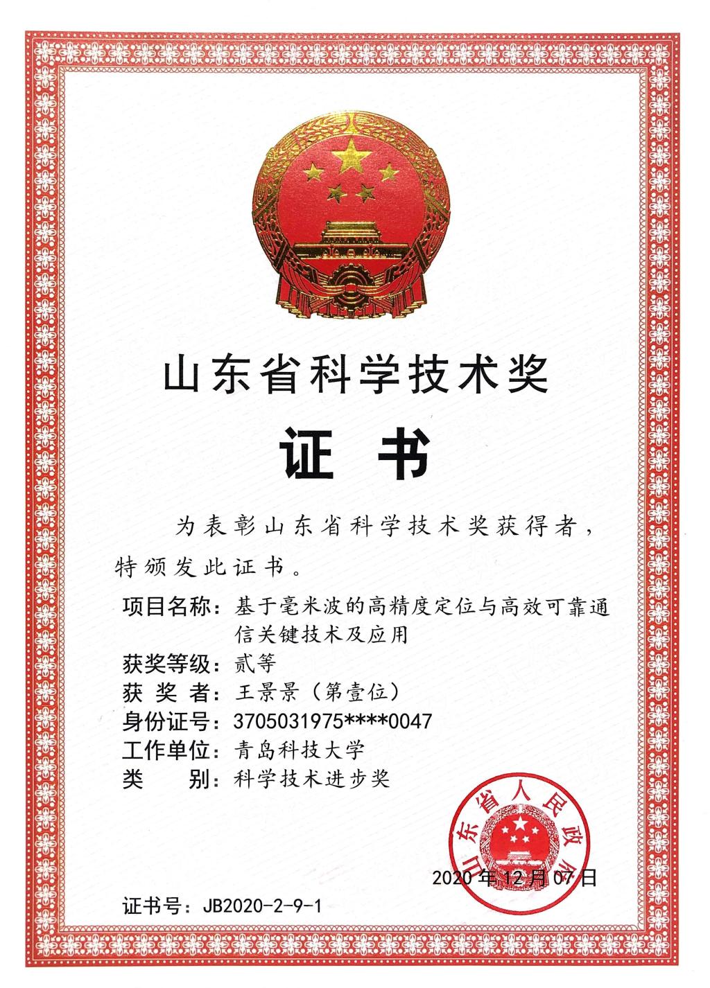 34、教师获奖--基于毫米波的高精度定位与高效可靠通信关键技术及应用(山东省科技进步二等奖)