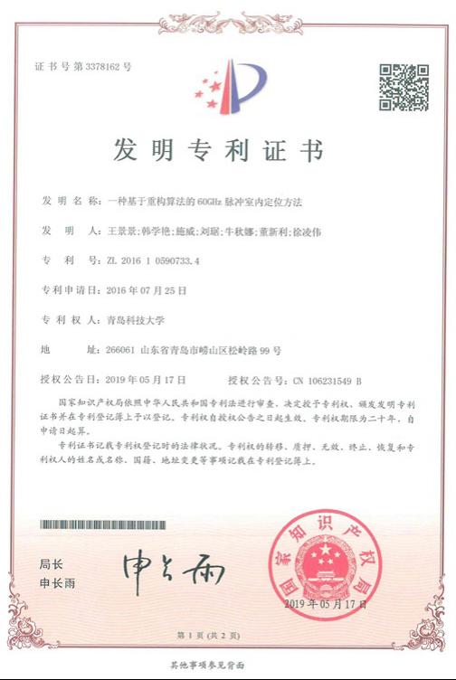 2、发明专利--一种基于重构算法的60GHz脉冲室内定位方法
