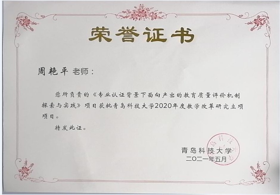 26、w66旗舰厅官网校教改项目--专业认证背景下面向产出的教育质量评价机制探索与实践