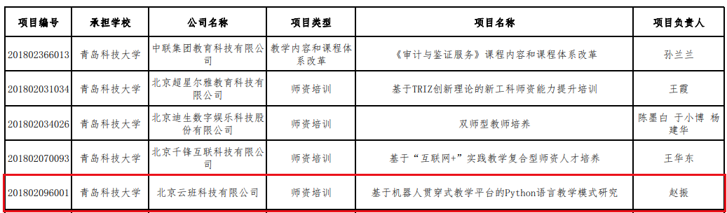 12、教育部产学合作协同育人项目--基于机器人贯穿式教学平台的Python语言教学模式研究
