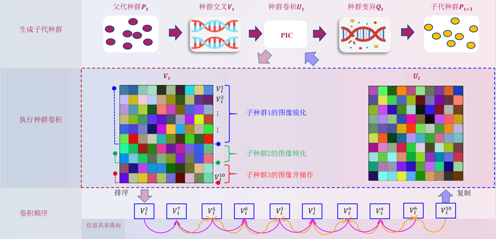 论文针对工业场景中广泛存在的约束多目标优化问题,提出了基于种群图像卷积的智能优化算法。该算法设计了三个列卷积核参与种群生成,通过共享种群个体间的进化信息兼顾约束求解和目标优化,在快速定位可行区域的同时对其深度搜索。此外,该算法还具有自适应更新卷积核应用范围及控制参数的优点,可适用于多个子种群。